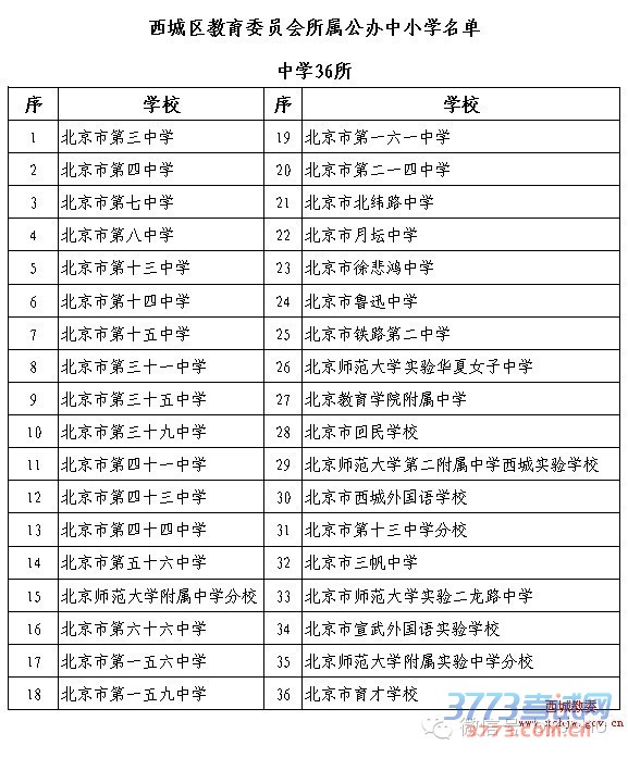 西城区2016年公办中小学最新名单出炉,小编现将名单分享如下,供西城区幼升小、小升初家长查看。