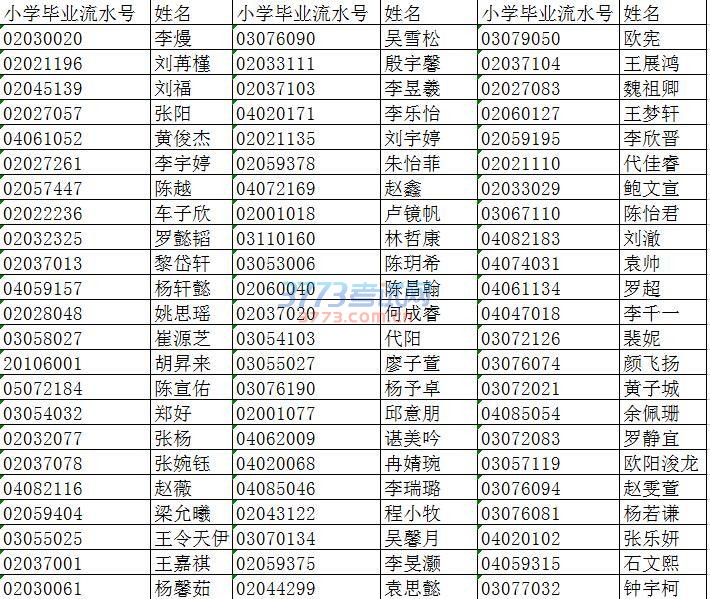 附:派位到树德中学(光华校区)的小学毕业生名单