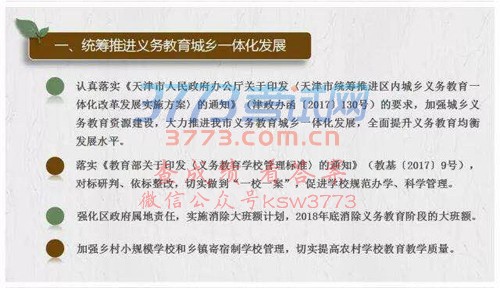 据了解,各区教育部门还将强化区政府属地责任,实施消除大班额计划,2018年底消除义务教育阶段的大班额。切实做好控辍保学工作,通过建立控辍保学动态监测机制和专项督导,确保我市义务教育完成率持续保持在99%的较高水平。落实优质高中招生指标分配到区域内初中的比例不低于50%的要求,并适当向农村偏远初中倾斜,不断缩小城乡、校际间教育质量的差距。