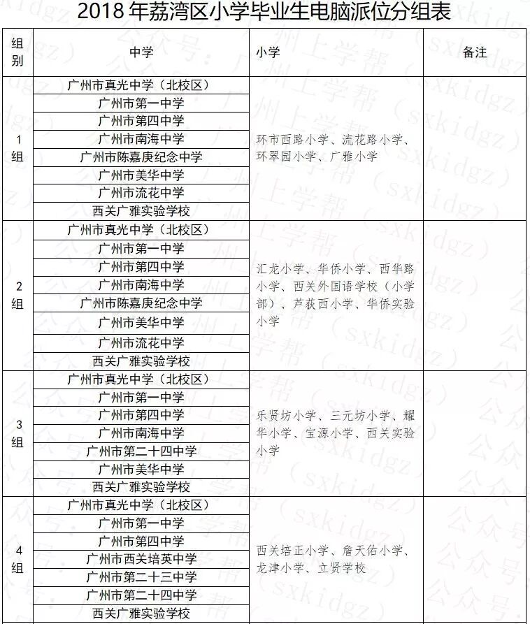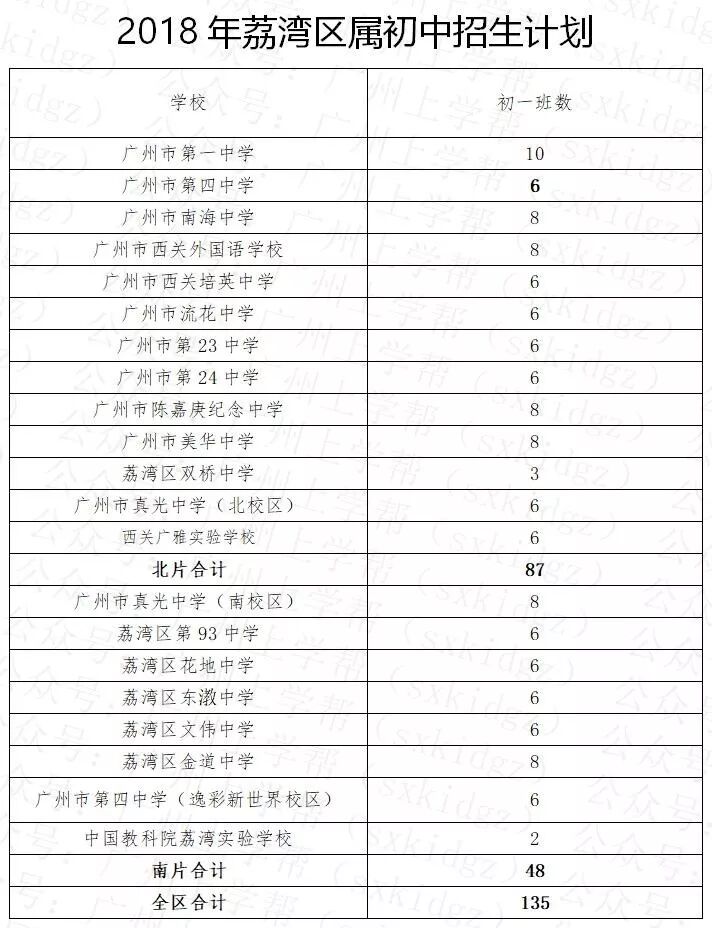 2018年广州市荔湾区公办初中招生计划与电脑派位表