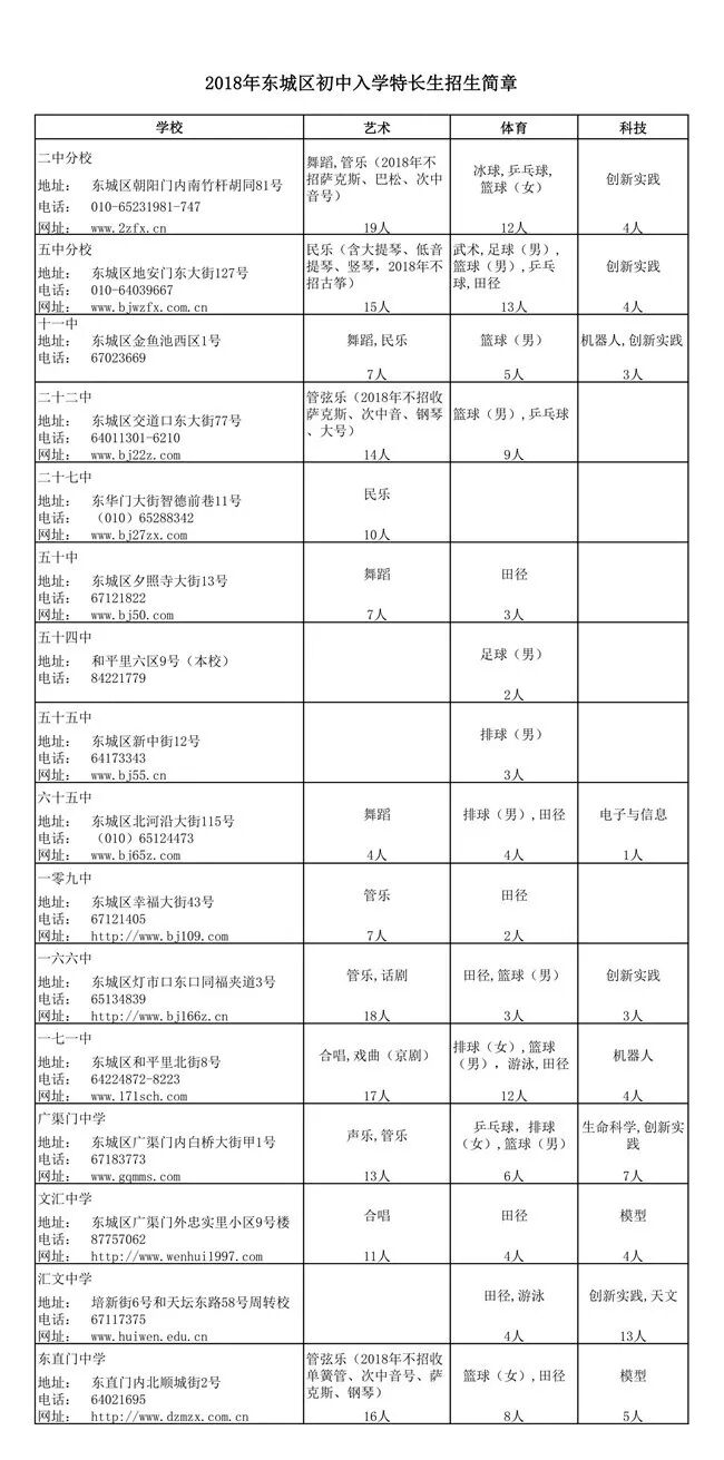 招收项目包括:田径、足球、篮球、排球、乒乓球、游泳、武术、跆拳道、冰球。各传统项目学校招收特长生项目以招生简章为准。