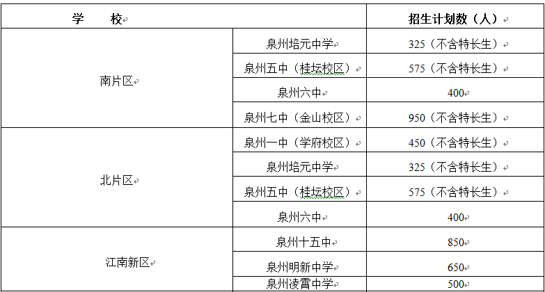 二是今年继续将各中小学划分为南、北两个片区,小学南北片区的划分不变,由于泉州三中并入泉州五中,中学的划分有变,南片区为泉州培元中学、泉州五中(桂坛校区)、泉州六中、泉州七中(金山校区)等4所中学,北片区为泉州培元中学、泉州五中(桂坛校区)、泉州六中、泉州一中(学府校区),其中泉州培元中学、泉州五中(桂坛校区)、泉州六中的派位招生计划南北片区各半(不含特长生)。