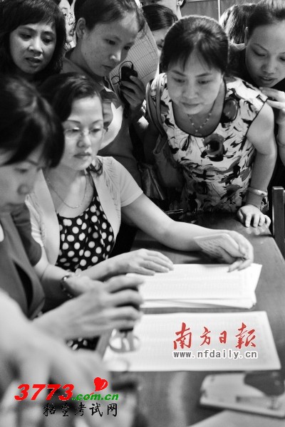 广州越秀区“小升初”电脑派位现场会上,家长们在查询录取结果。梁文祥 摄