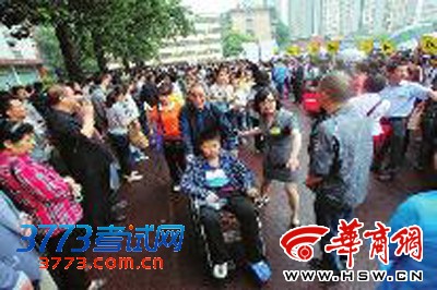 昨日上午8时许,离测评开始还有1个小时,西安交大附中分校门外已经排成了百米的队伍,学生和家长们陆续走进学校。