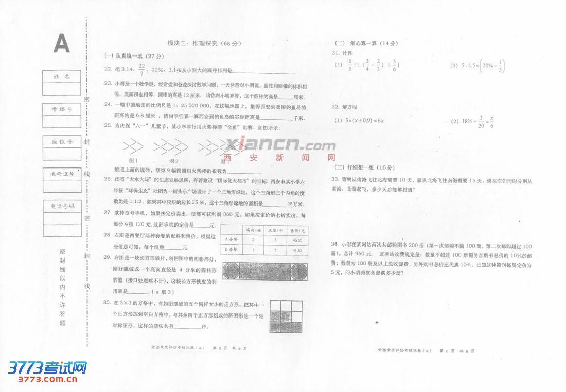 西安新闻网讯 5月27日,西安市教育局公布了参加“5·26”民办学校小升初综合素质测评“四大名校”的测试题,这四所学校包括高新一中初中校区、交大附中分校、西工大附中分校、西安铁一中分校。