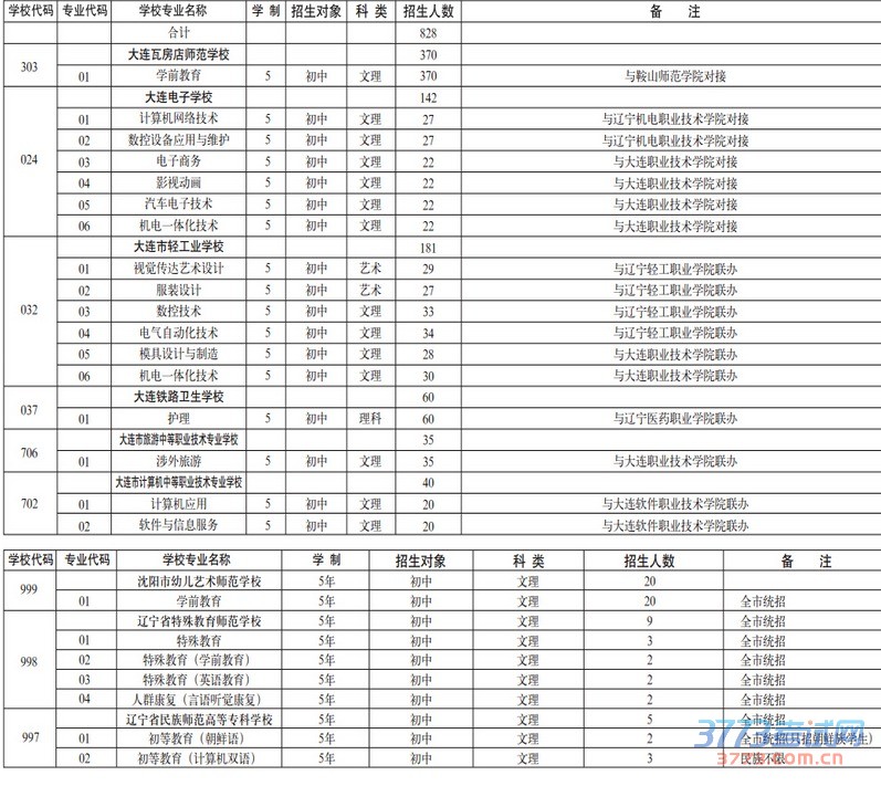 2015年大连市师范中等职业学校初中起点五年制招生计划