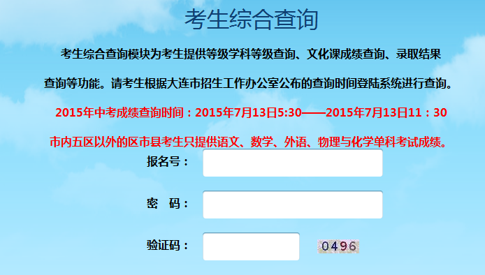 查询等功能。请考生根据大连市招生工作办公室公布的查询时间登陆系统进行查询。