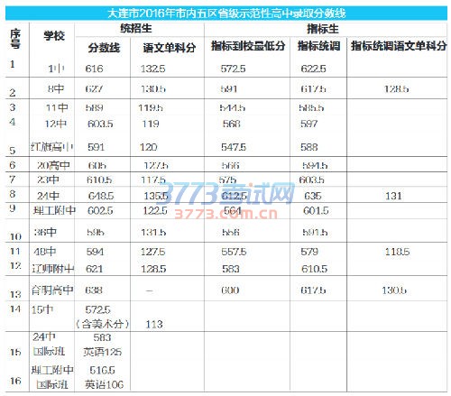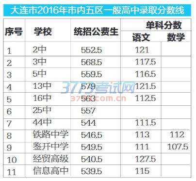 2016年市内五区普通高中录取工作已结束。现公布市内五区普通高中录取分数线如下: