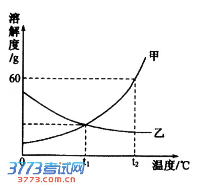 51.右图是甲、乙两种固体物质的溶解度曲线。