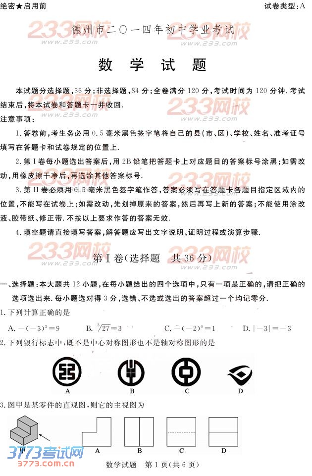 2014年德州市中考数学试题及答案发布