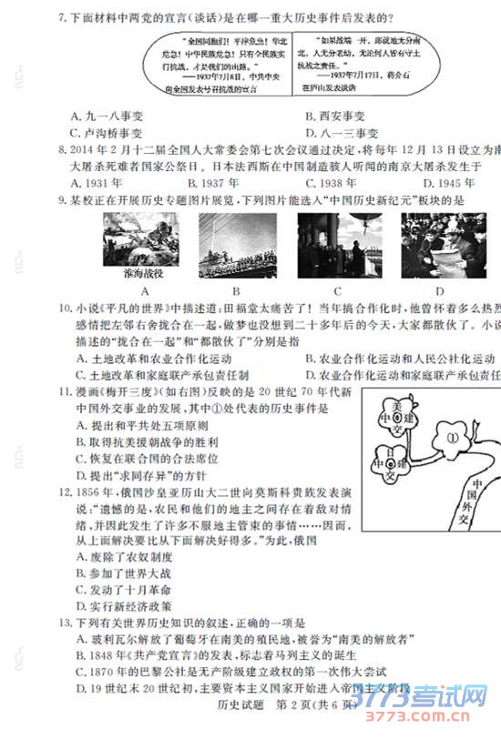 2015德州中考历史试卷及答案免费版