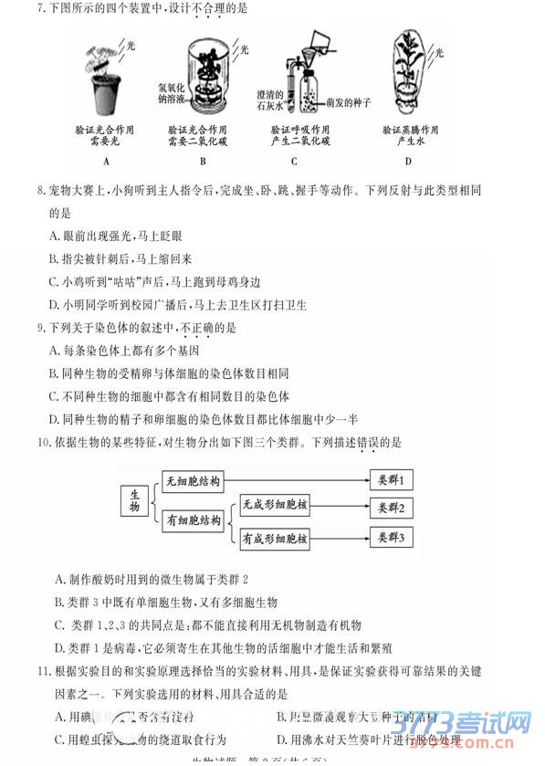 公布山东中考试题、答案和中考作文。祝各位考生都能取得好的成绩。2015年山东德州中考生物试题(图片版):