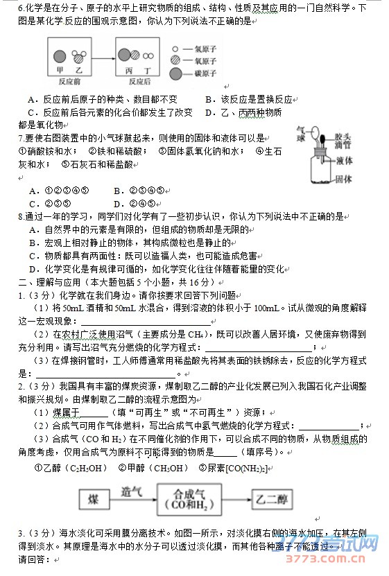 7.要使右图装置中的小气球鼓起来,则使用的固体和液体可以是