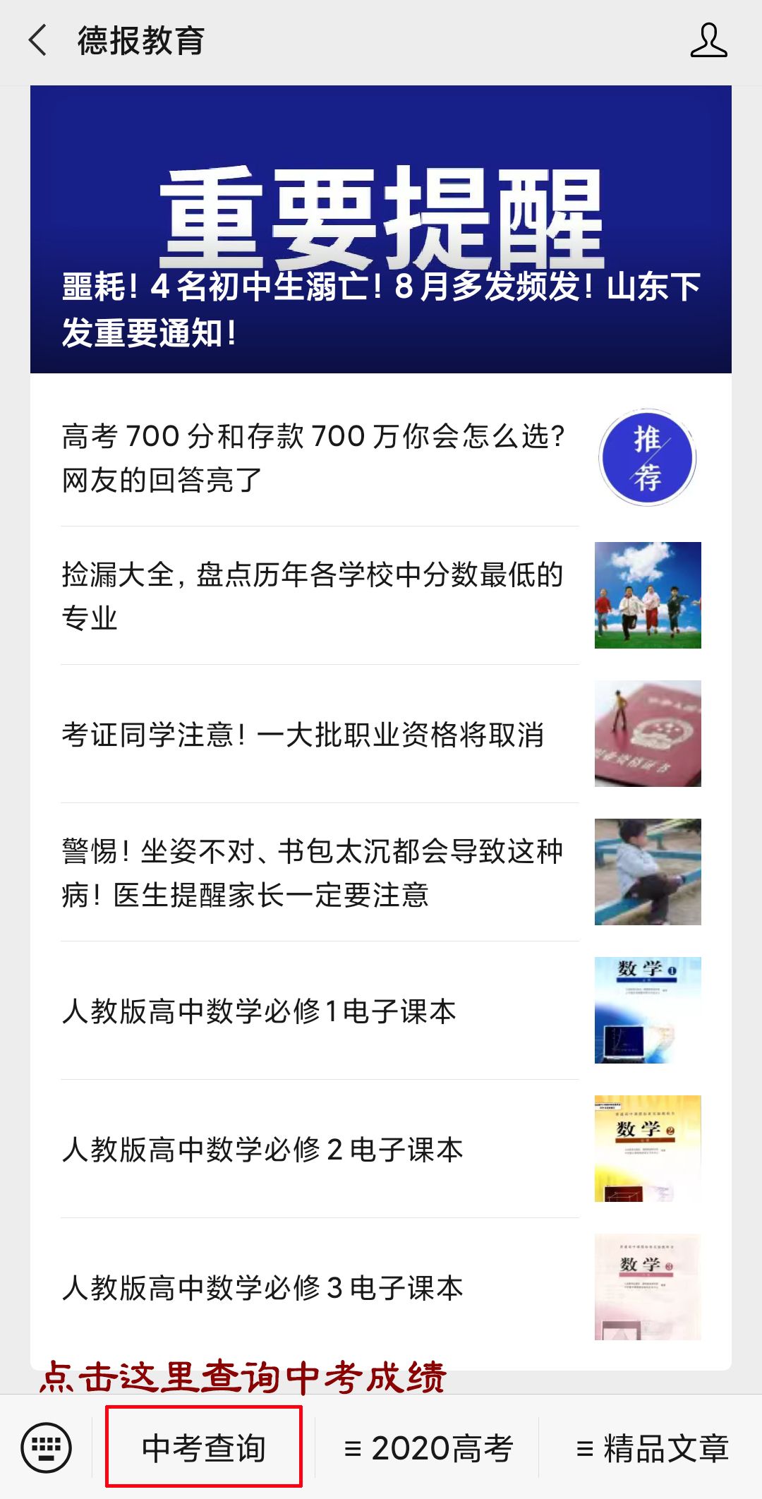 请关注德州市教育和体育局网站http://dzedu.dezhou.gov.cn/和公众号德州教育发布微信号: dzjyfb,成绩和录取结果手机上即可查询。
