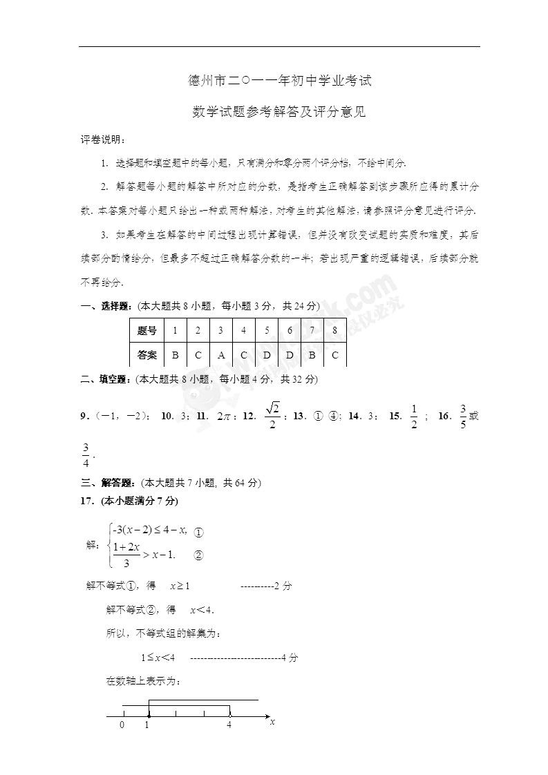 山东德州2011中考数学试题及答案
