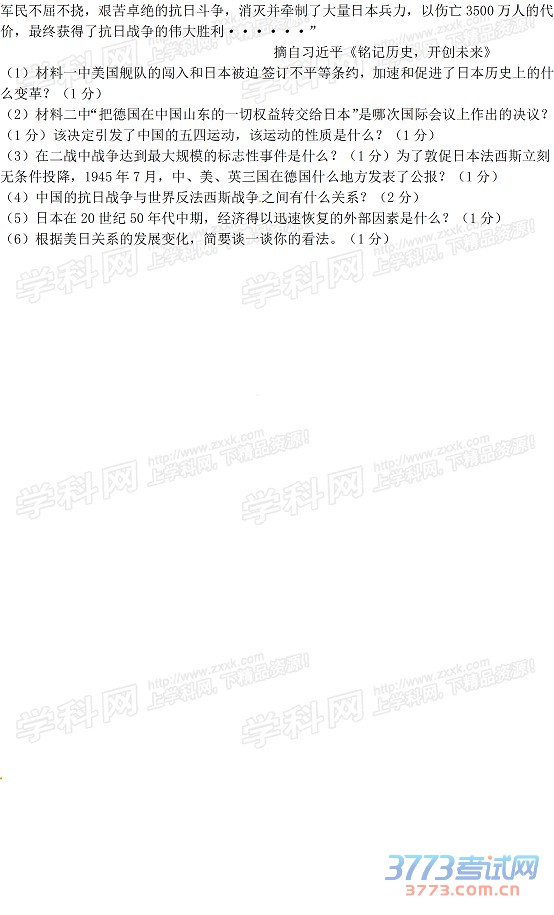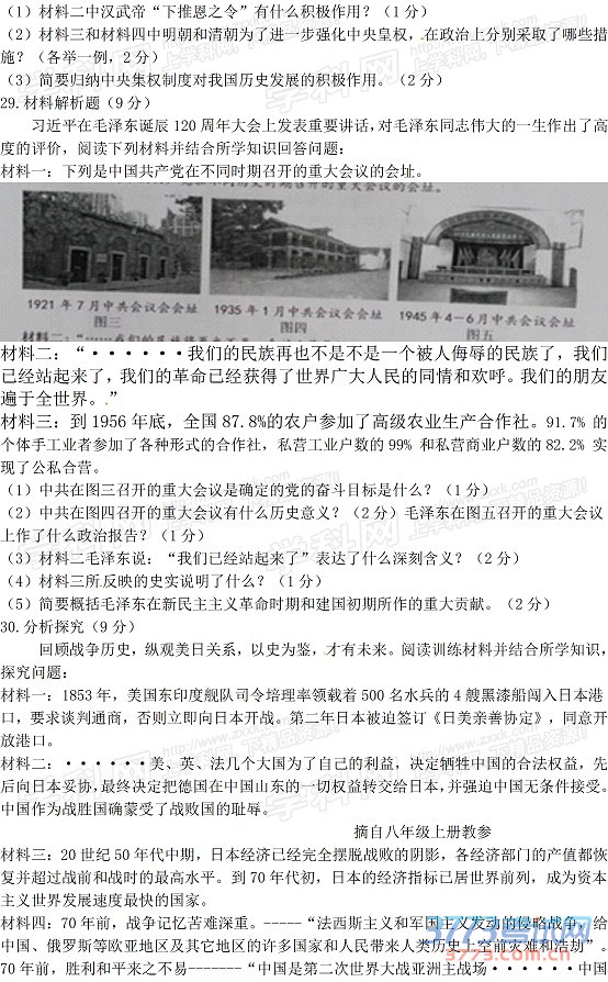 2015恩施中考历史试题及答案发布