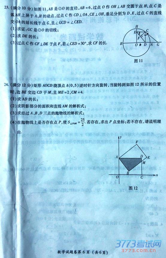 2015恩施中考数学真题试题卷发布