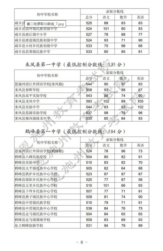 2021年湖北恩施中考第二批指标到校计划录取分数线公布,希望对同学们有所帮助,仅供参考。
