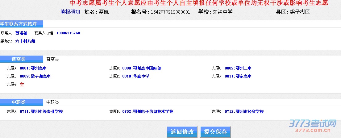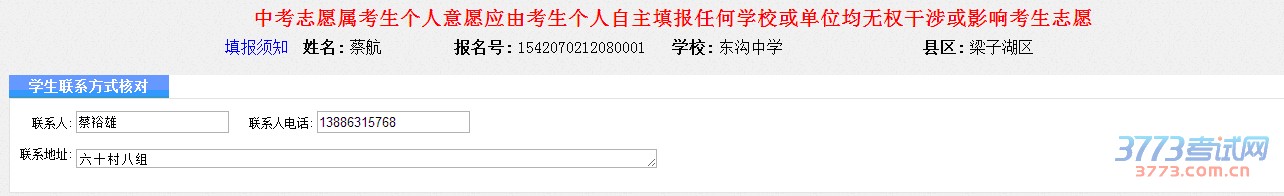 7.考生在网上填报系统中要认真填写本人的联系电话和录取通知书送达地址,这是考生网上录取电子档案信息中的重要部分。主要用于录取期间招生部门或招生学校与考生联系,用于招生学校送达录取通知书。如果考生不填写或填写不准确,可能会影响录取,录取后无法送达录取通知书。所以请考生和家长一定要认识到填写本人通讯方式和录取通知书送达地址的重要性,一定要按网上填报志愿系统的要求,认真、准确、完整地填写,并确保在录取期间所填电话的畅通。