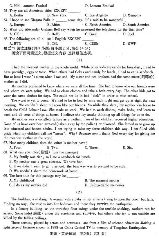 鄂州2011中考英语试题试卷及答案