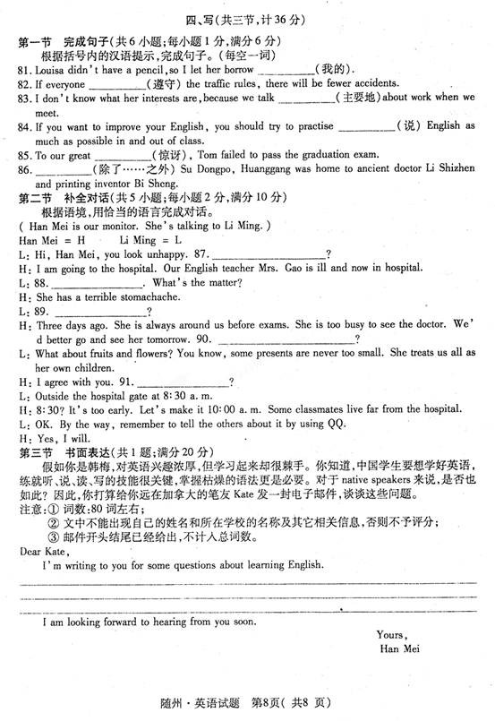 鄂州2011中考英语试题试卷及答案