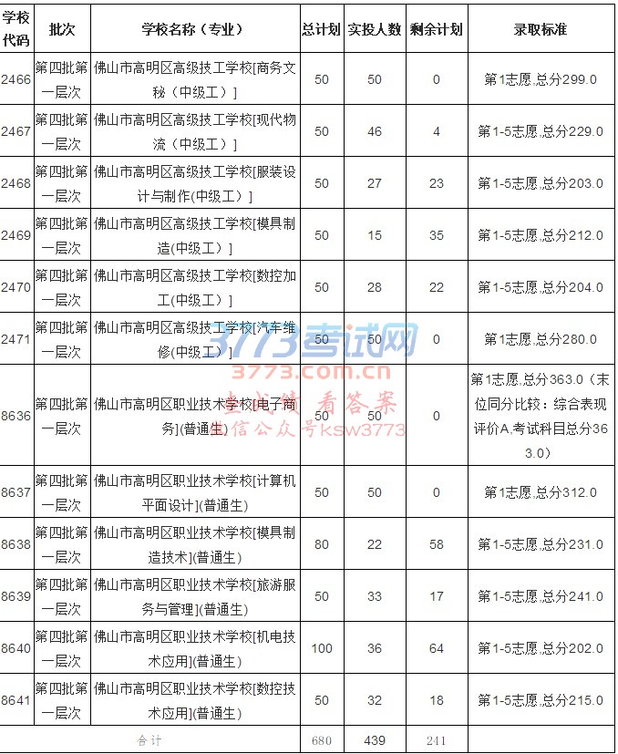 2466第四批第一层次佛山市高明区高级技工学校[商务文秘(中级工)]50500第1志愿,总分299.0