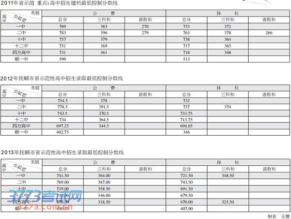 距离中考的日期越来越近,抓紧备战的广大考生正处于百米冲刺阶段。为了帮助考生和家长了解近年来我市各校招生情况,为考生提供有价值的信息和建设性的建议,我们把近三年来抚顺市省示范性高中招生录取最低控制分数线加以汇总,希望能对考生应考有所帮助。