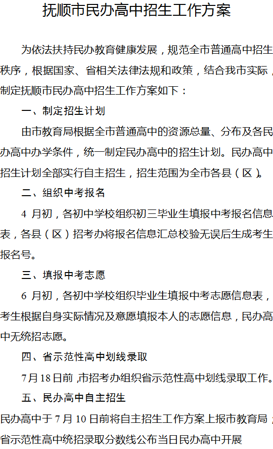 2017抚顺市民办高中招生工作方案的通