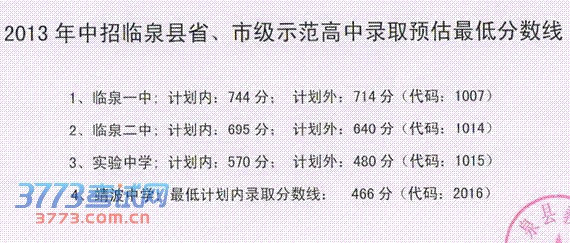 临泉2013年中考录取分数线划定,其中临泉一中分数线为720分,临泉二中分数线为680分。