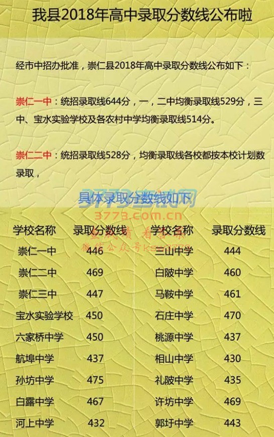 崇仁县2018年高中录取分数线公布!