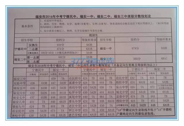 宁德民中、福安一中、福安二中、福安三中2016录取分数线