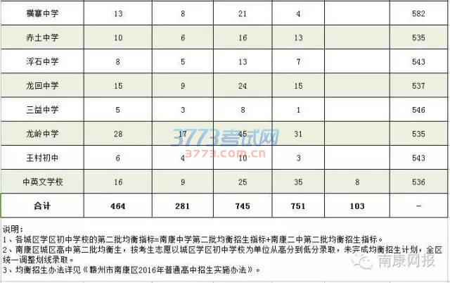 2、南康区城区高中第二批均衡生招生计划745人,按考生志愿从高分到低分录取,未完成均衡招生计划,全区统一调整划线录取,调剂录取分数线为535分(其中535分19人),录取人数751人。