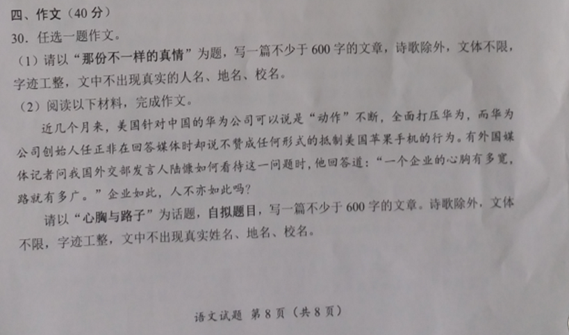 2019广安中考作文题目:那份不一样的真情/“心胸与路子”话题