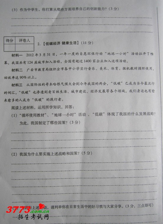 2012广安中考政治历史地理试卷答案