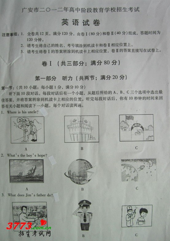 英语试卷及答案,2012年中考试题及答案已陆续公布