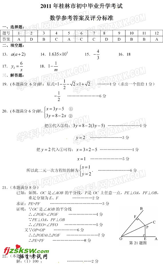 广西桂林2011中考数学试题及答案