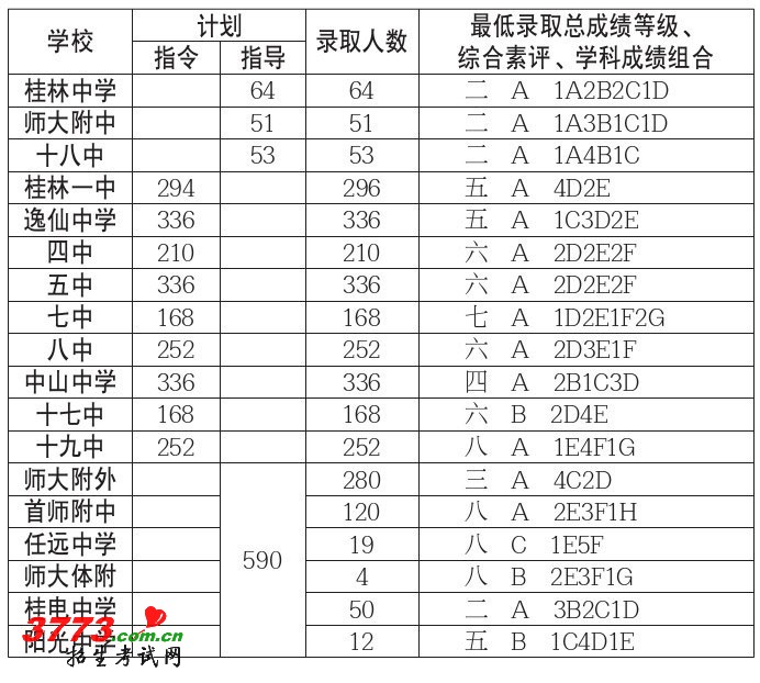 第二时段招生中,市区3所示范性普通高中和9所非示范性公办普通高中均完成招生计划。一中由于该校最低录取等级有3人成绩并列,因此根据中考招生方案要求,3人一并录取。此外,首师大附中和桂电附中两所民办高中也完成了招生计划。(根据报名情况当天自动形成的各学校招生录取情况如左表)