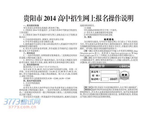 2014贵阳高中招生网上报名操作说明