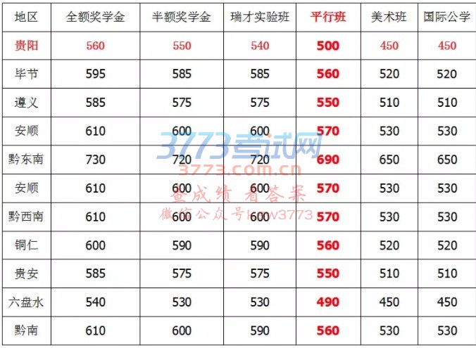 目前,贵州省各地州中考分数均已公布,根据各地中考情况,贵阳一中普瑞国际学校拟定下列分数线。