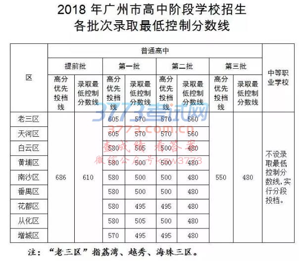【中考资讯】2018年广州高中阶段学校招生录取最低控制分数线公布!
