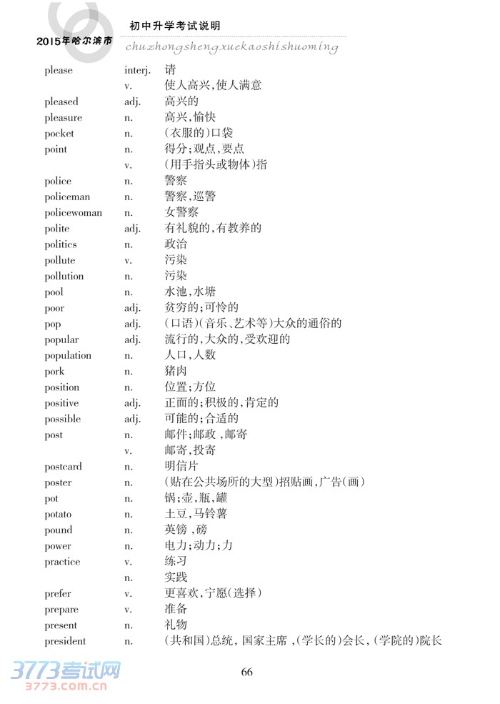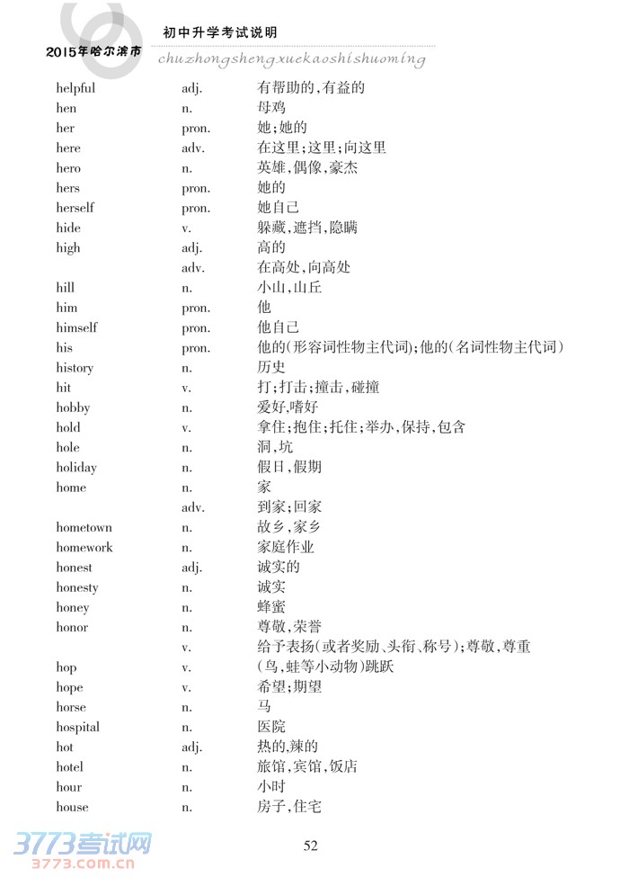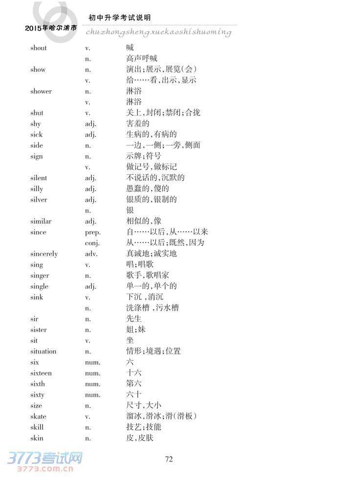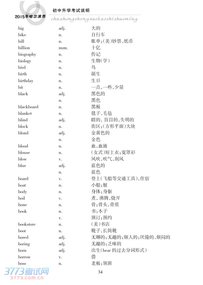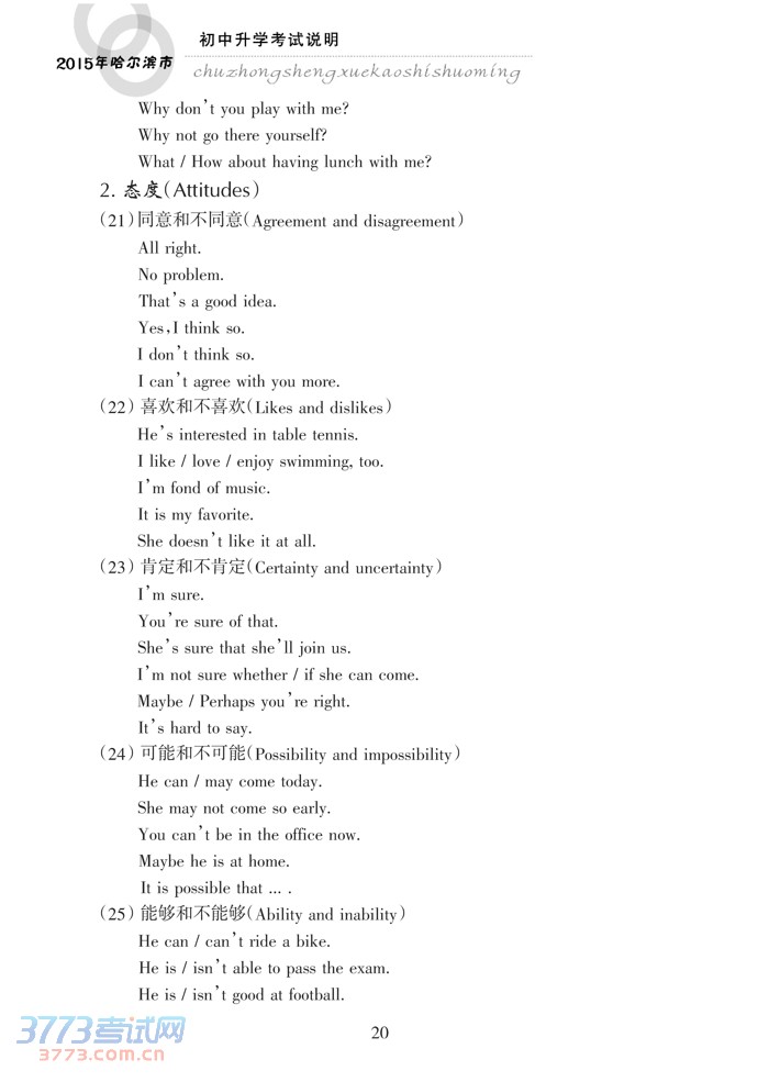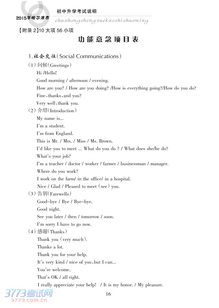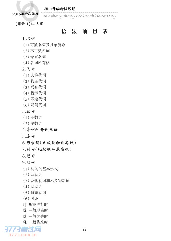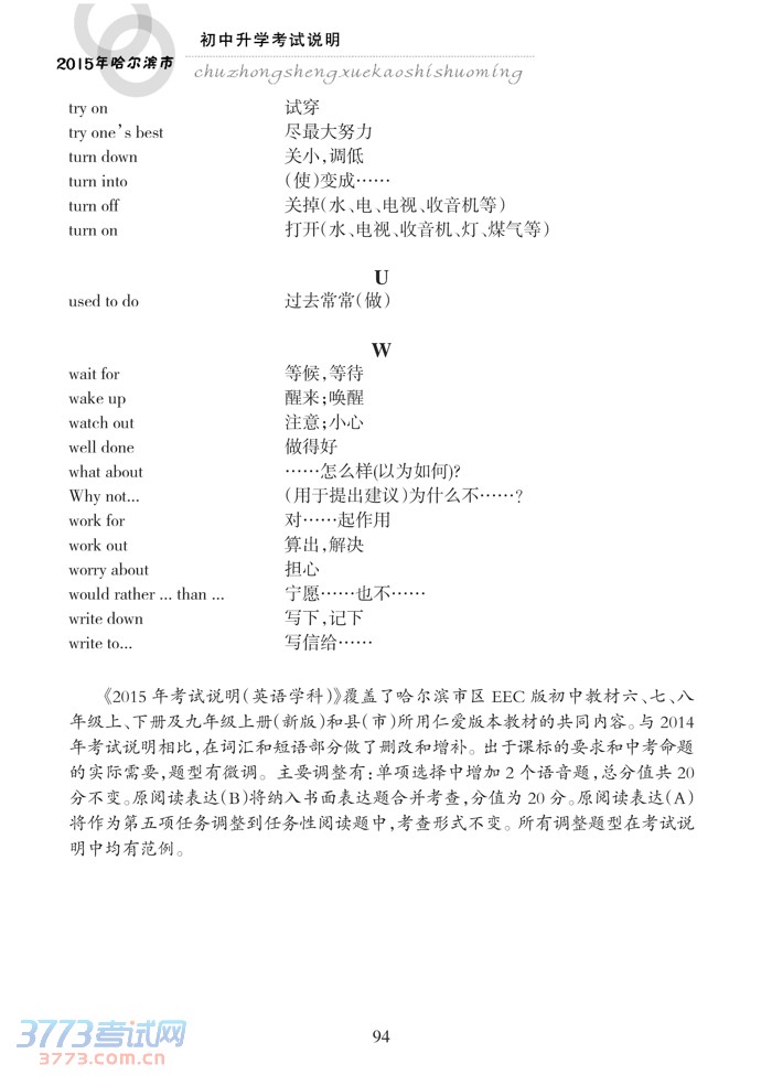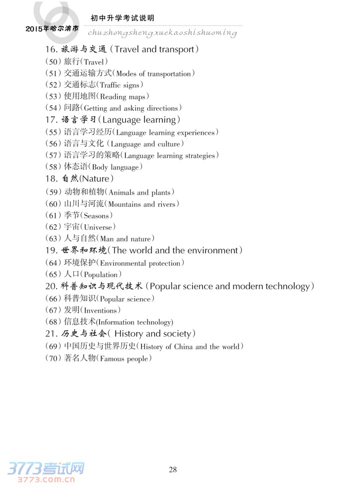 哈尔滨市2015年初中升学考试说明(英语)
