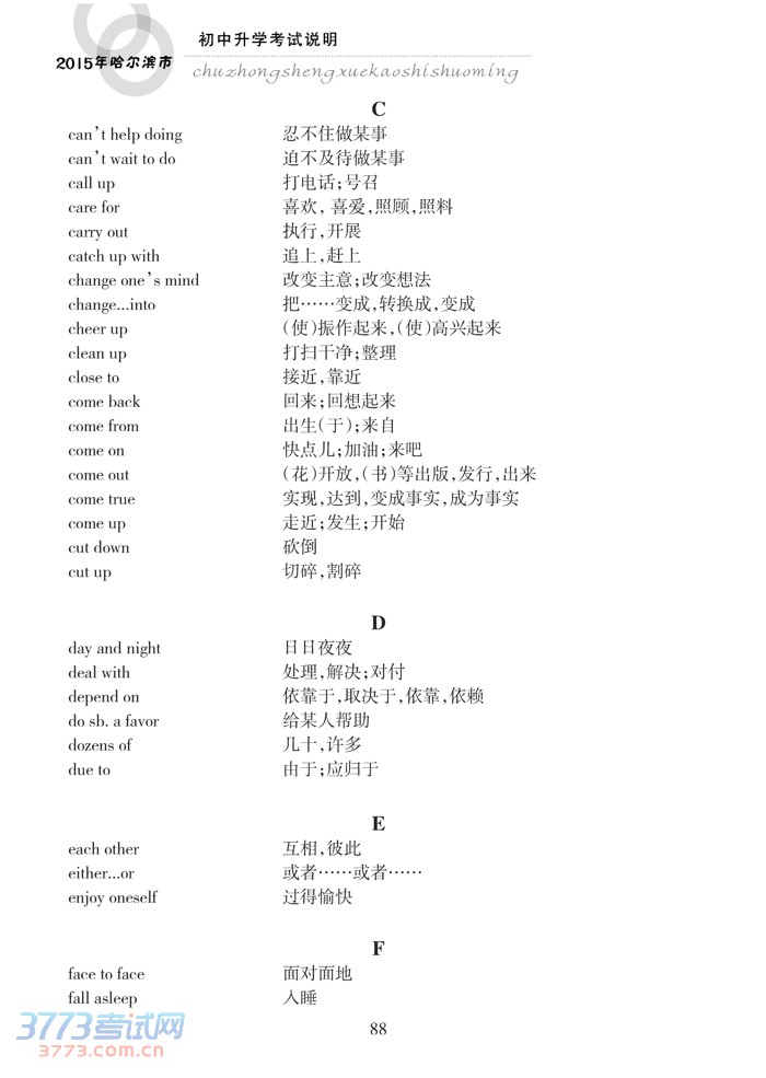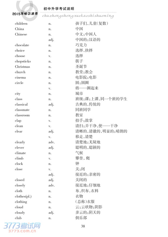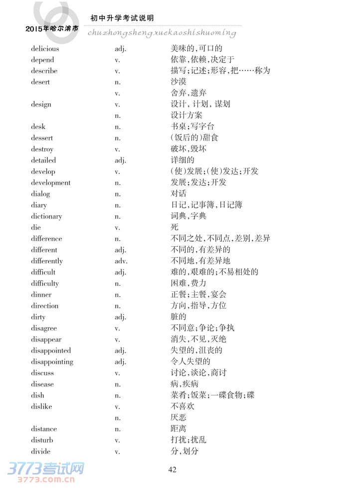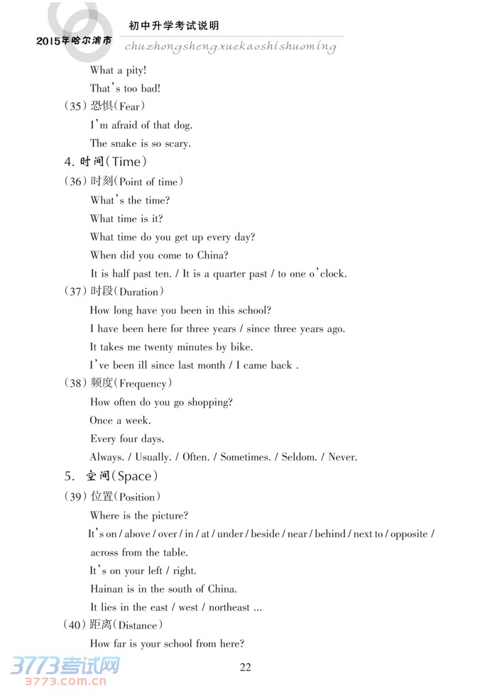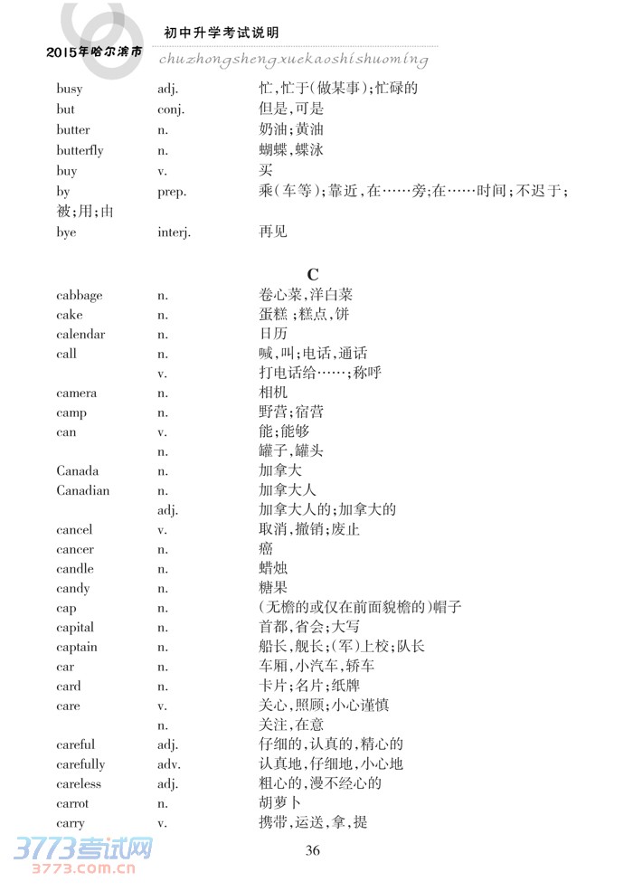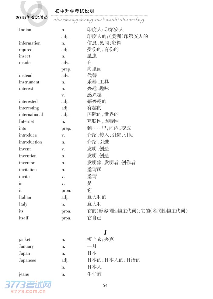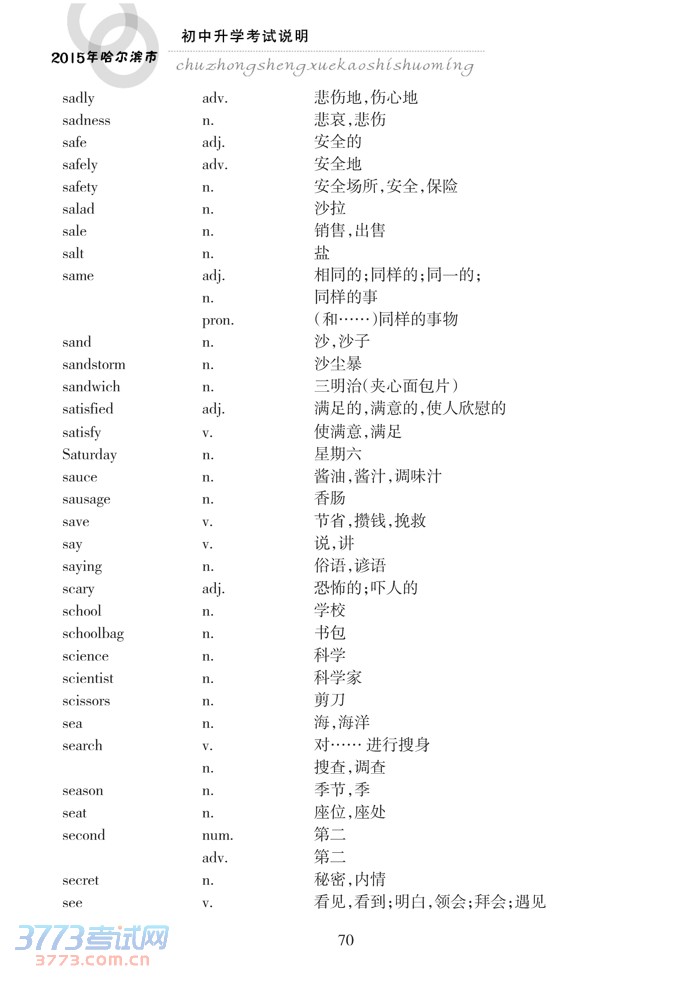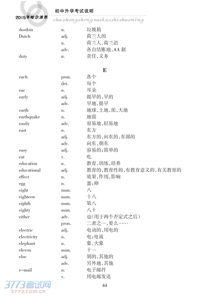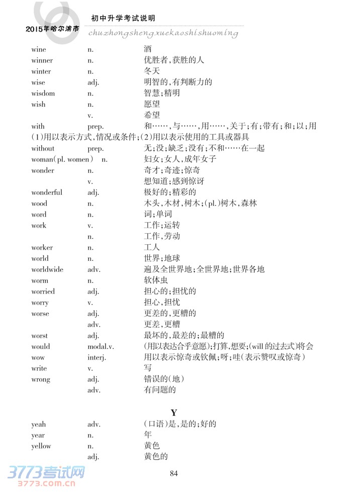 哈尔滨市2015年初中升学考试说明(英语)