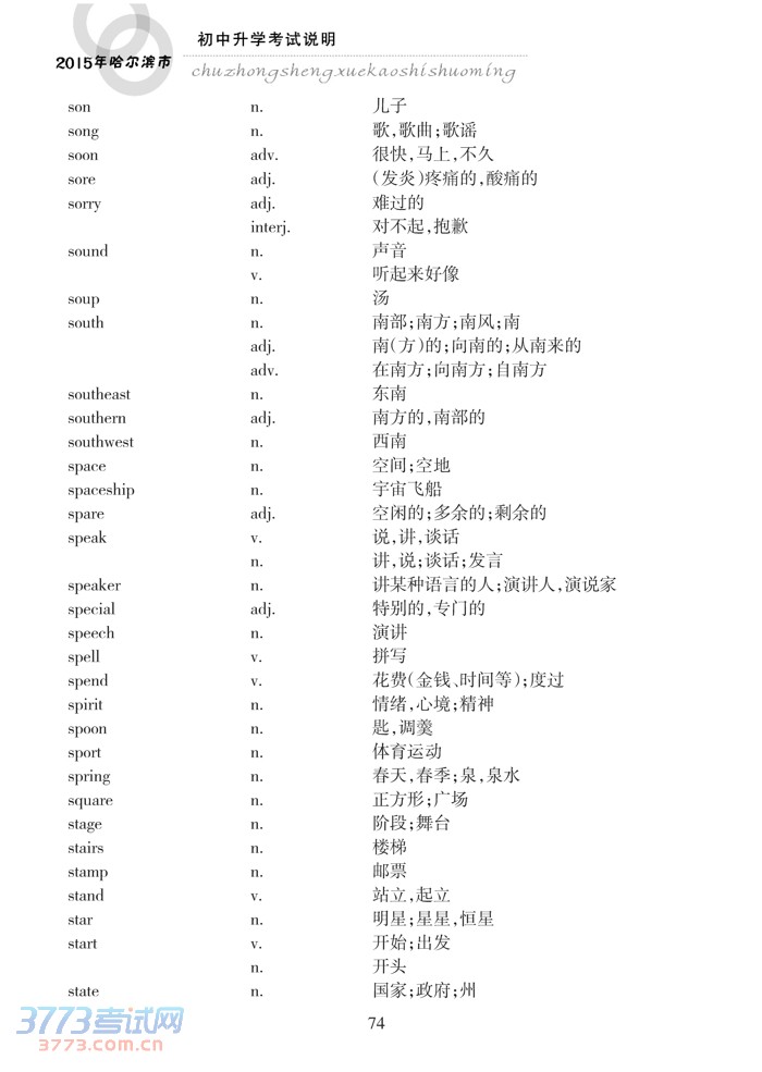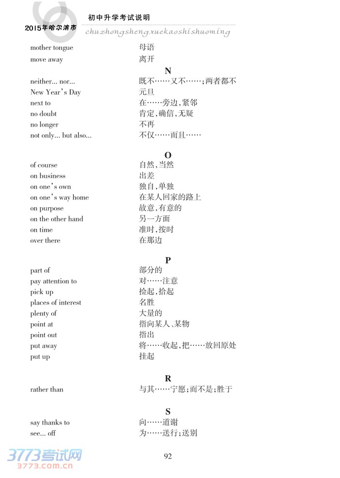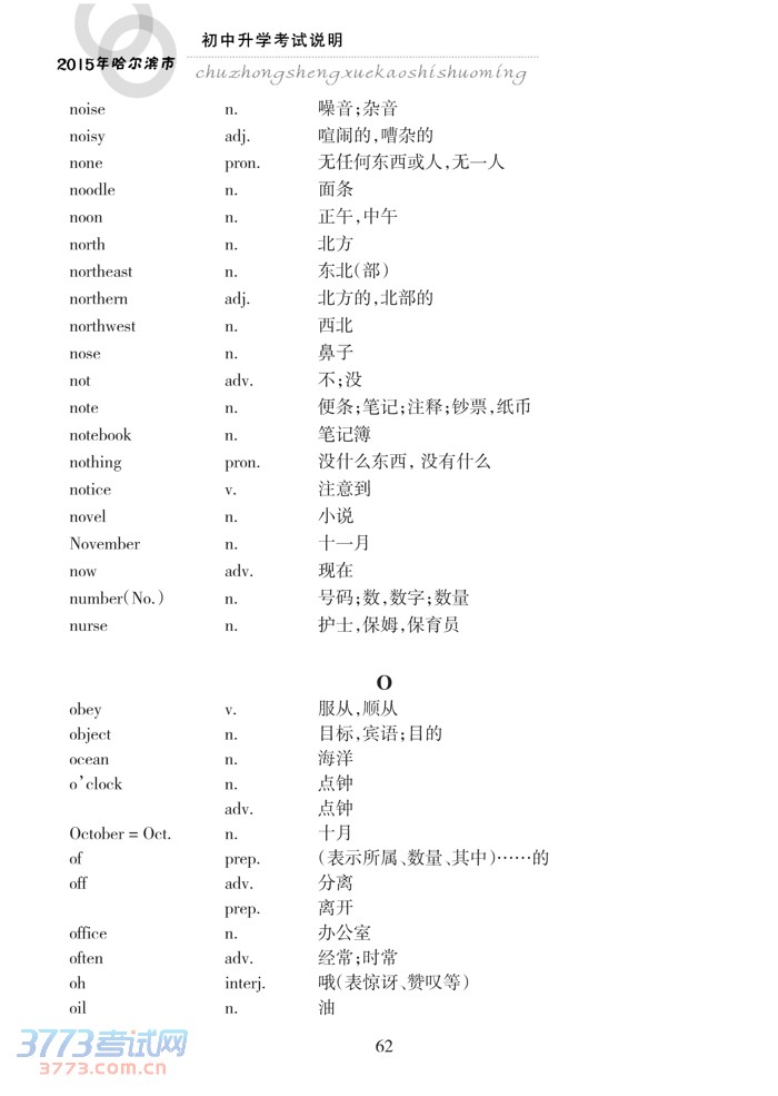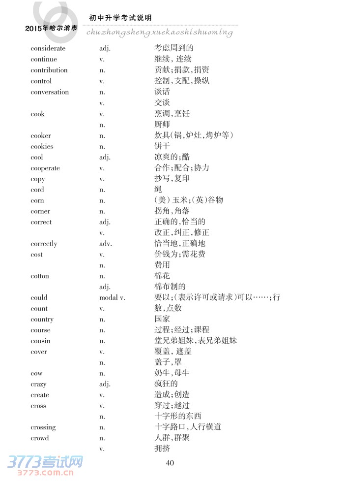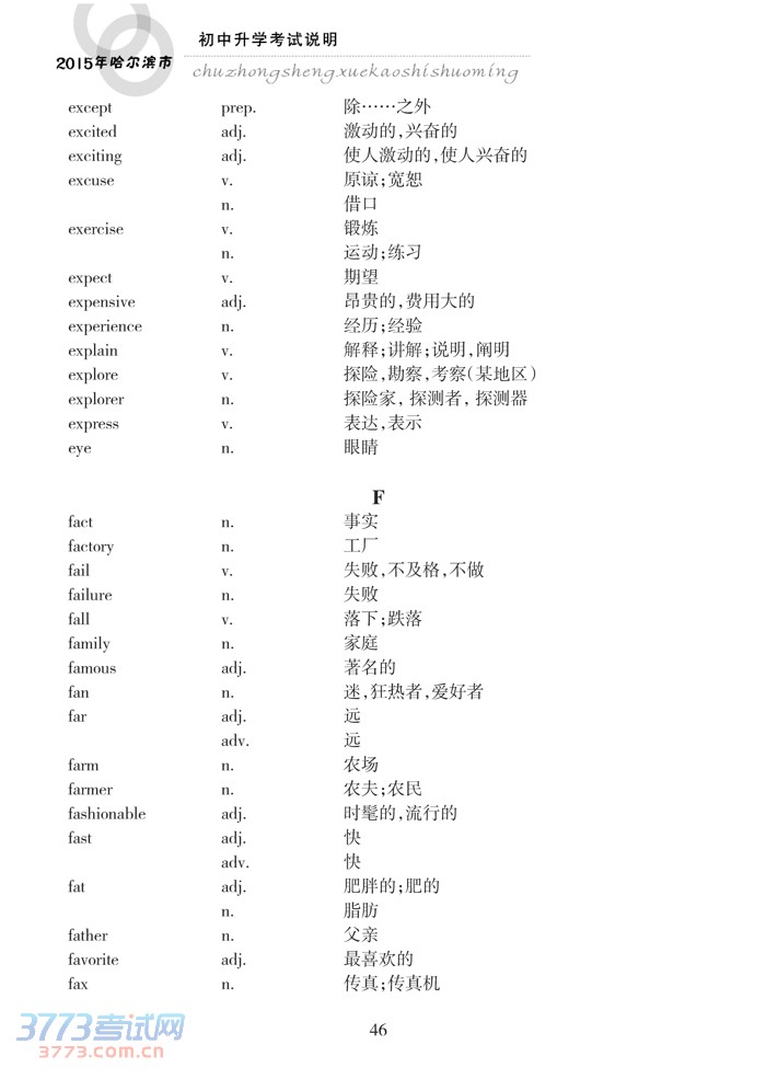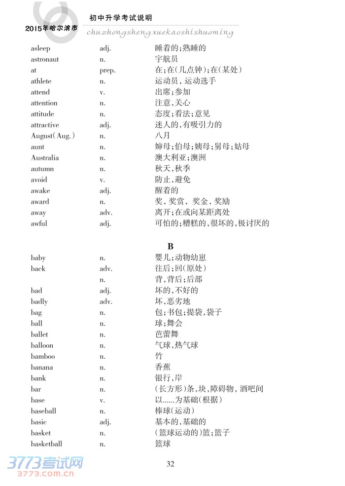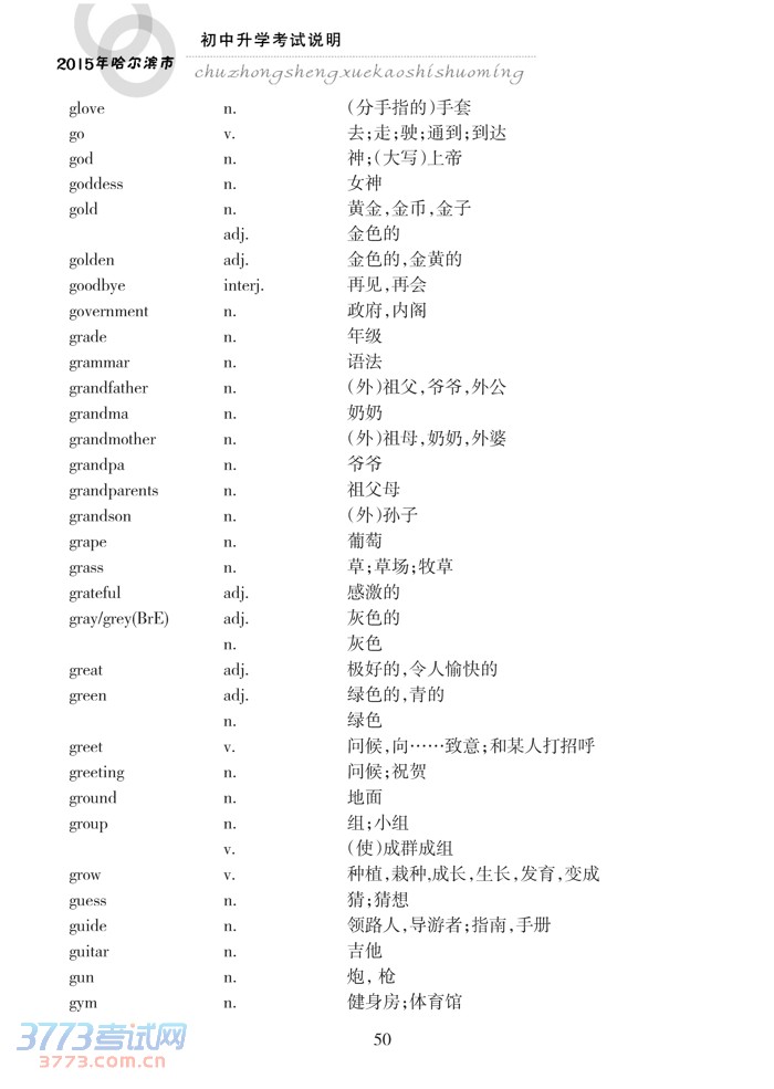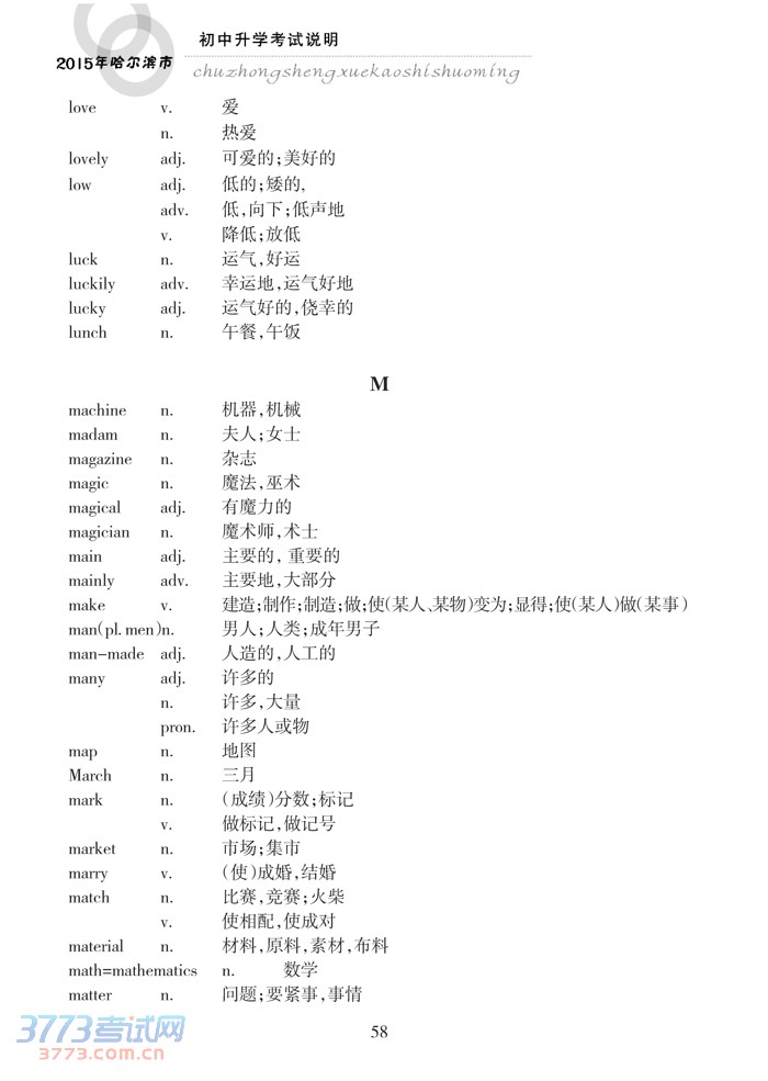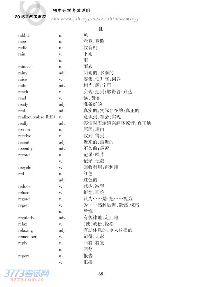 哈尔滨市2015年初中升学考试说明(英语)