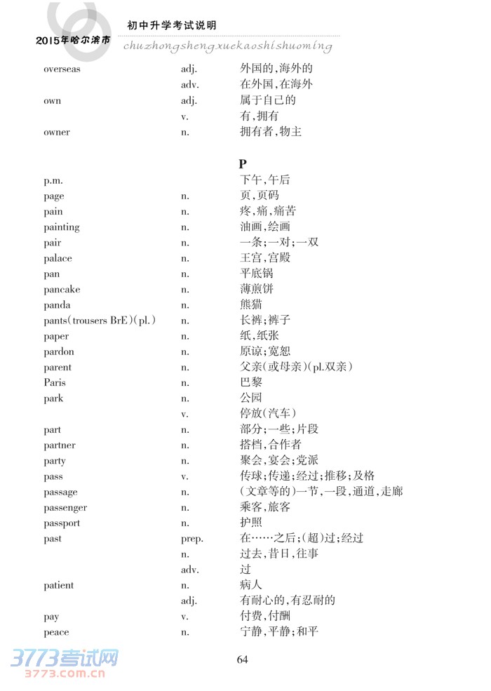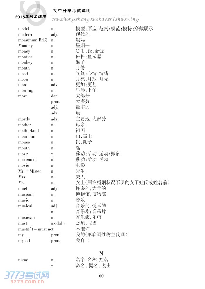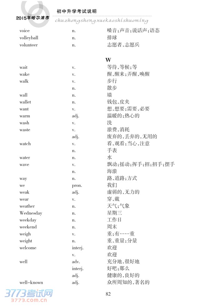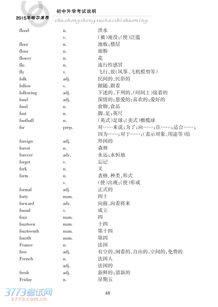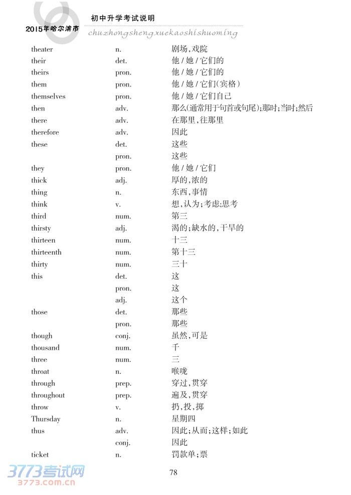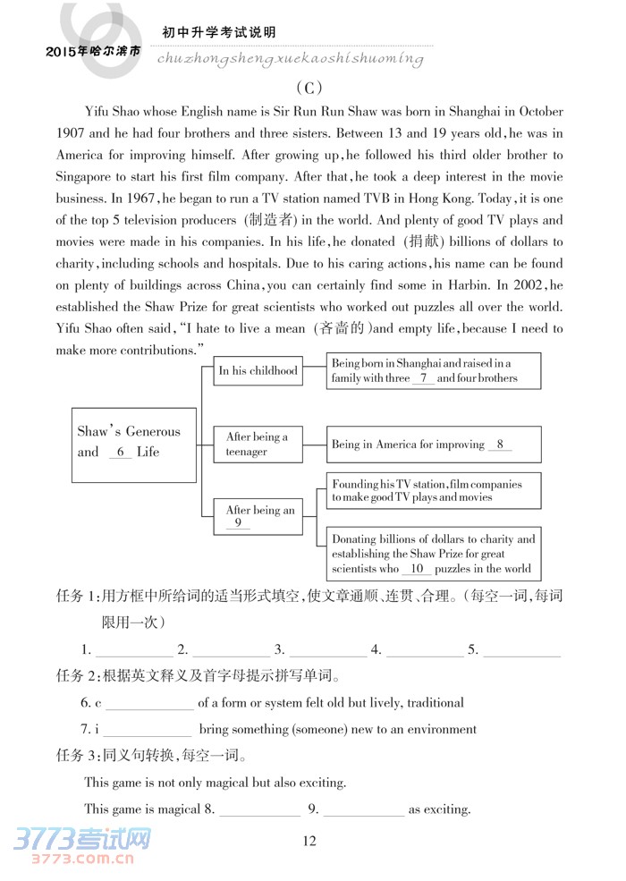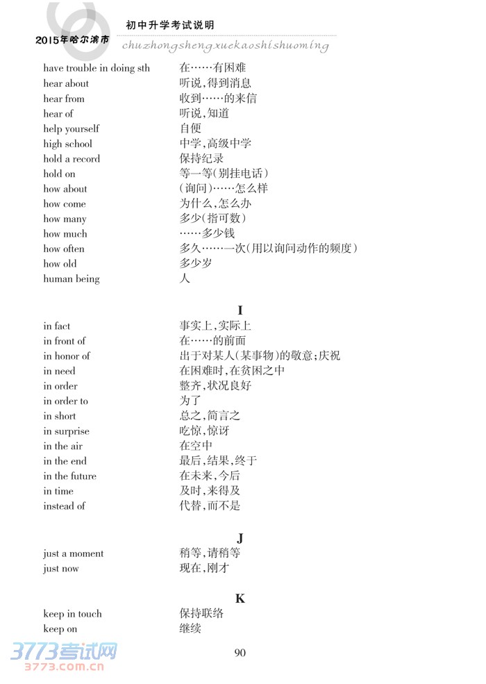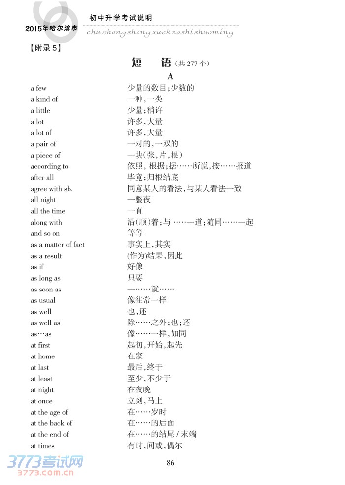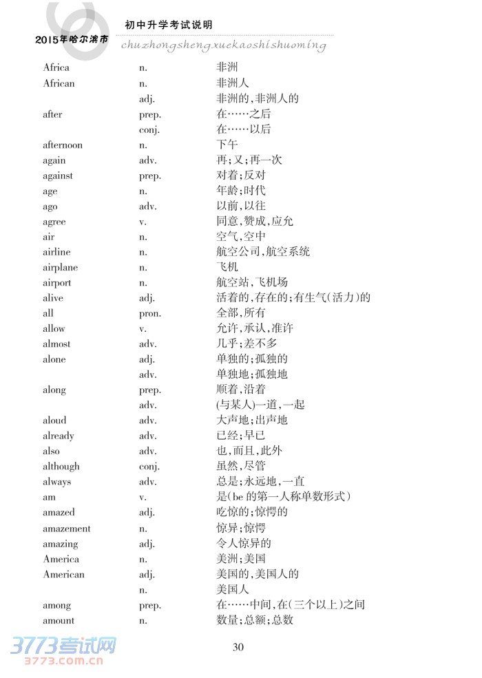 哈尔滨市2015年初中升学考试说明(英语)