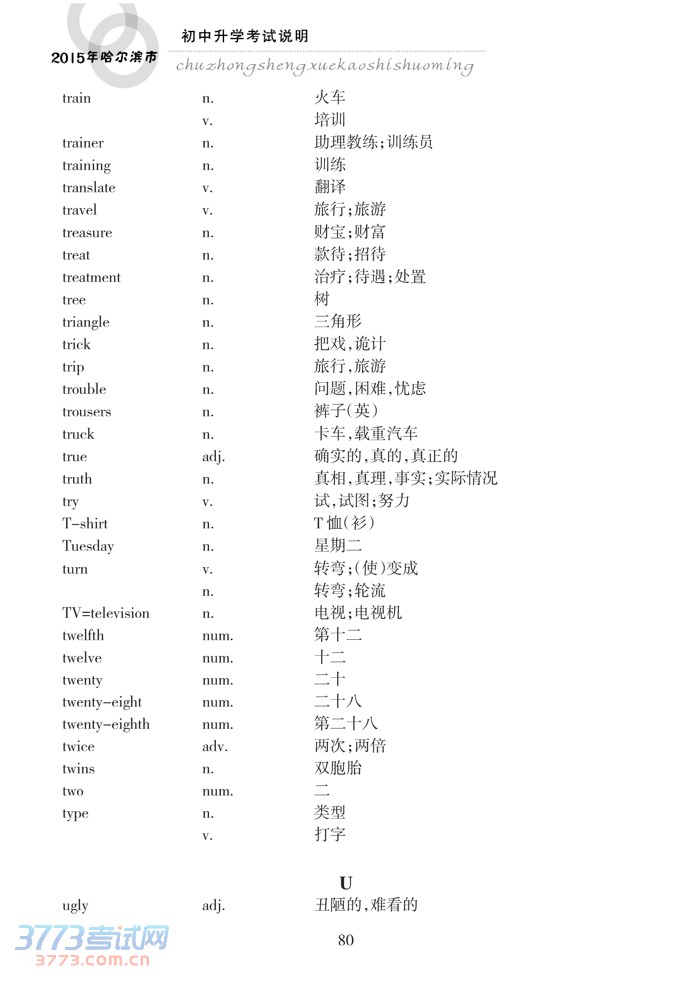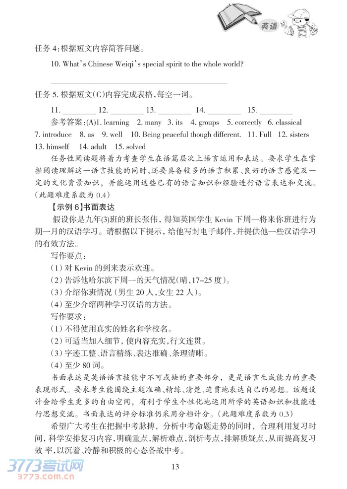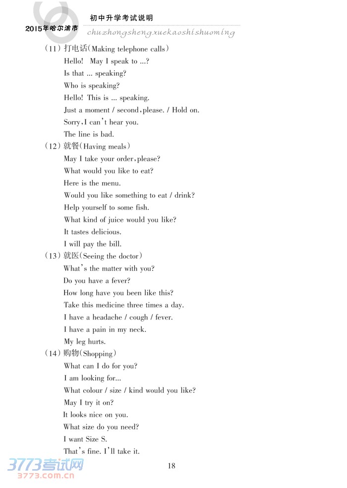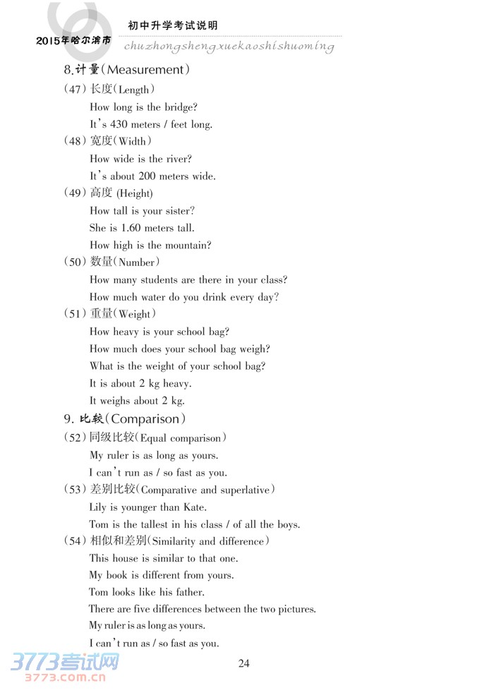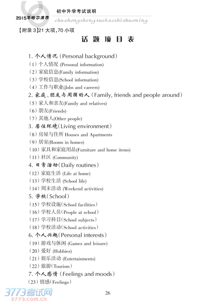 2015哈尔滨中考英语考试说明大纲