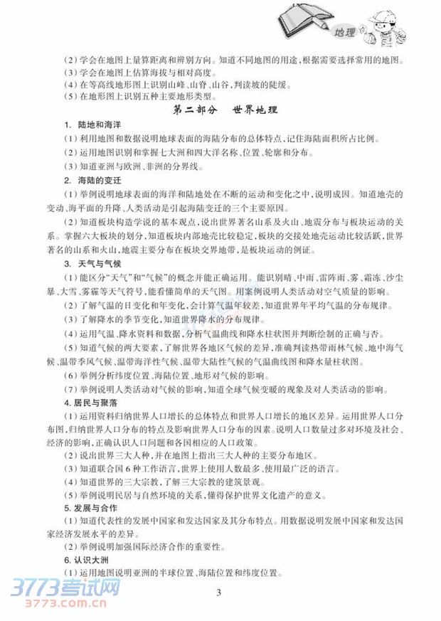 2015哈尔滨中考地理考试说明大纲