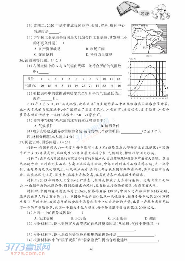 2015哈尔滨中考地理考试说明大纲