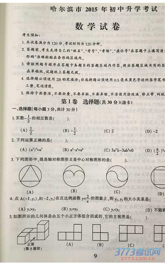 公布中考试题、答案和中考作文。祝各位考生都能取得好的成绩。2015年哈尔滨中考数学试题及答案: