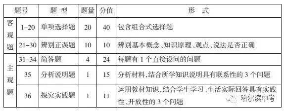 哈考网快讯 12月9日下午16时,哈尔滨市教育局官方网站开始发布2017年初中升学各科考试说明(以下简称中考说明)据政治科目《中考说明》显示,客观题约50分,主观题约50分。各题型与分值参照2016年学业考试题。
