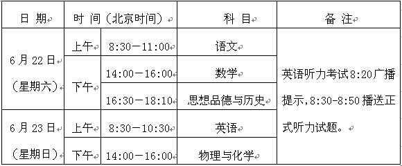 2. 2013年全省统一的初中毕业学业考试时间为6月22日至23日。各科具体考试时间如下: